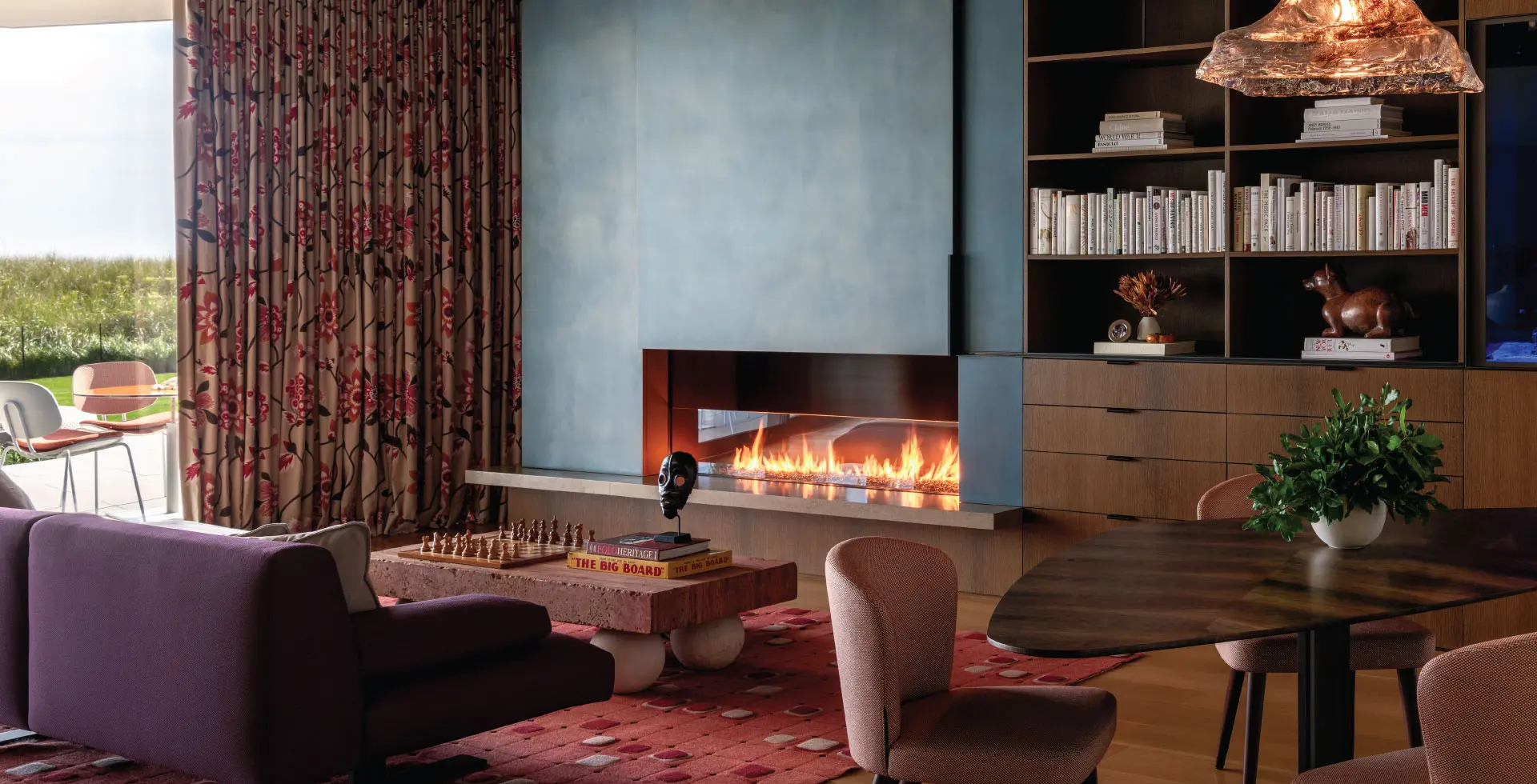 - Vertical, tall-view fireplaces